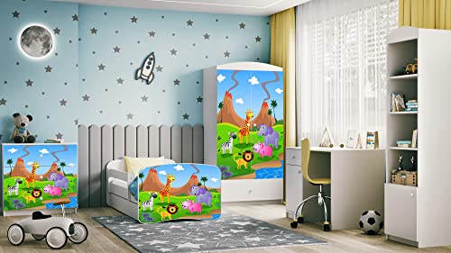 Wonderhome Kids Letto per Bambini Singolo Bianco 70x140 80x160 80x180 con sponda anticaduta con barriera con Materasso cassettone Estraibile e Telaio a doghe per Bambini e Bambine - Safari - 140x70