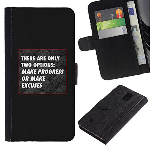 WonderWall Carta Da Parati Immagine Pelle Carte In Guscio Portafoglio Custodia Rigida Protezione Cover Case Per Samsung Galaxy Note 4 SM-N910 - nero grigio progresso scuse ispirando