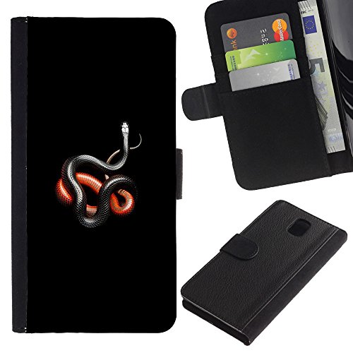 WonderWall Carta Da Parati Immagine Pelle Carte In Guscio Portafoglio Custodia Rigida Protezione Cover Case Per Samsung Galaxy Note 3 III N9000 N9002 N9005 - minimalista nero rosso serpente natura sibilo