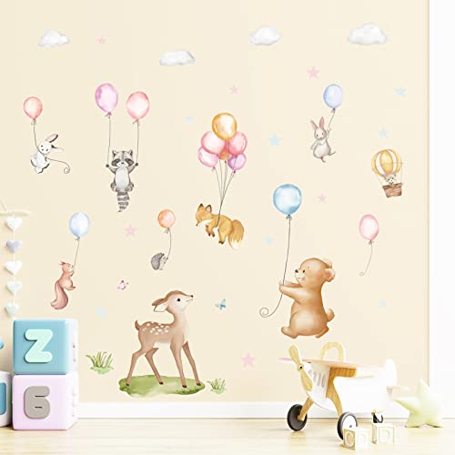 Wondever Adesivi Murali Palloncini Animali Sticker da Muro Mongolfiera Orso Cervo Coniglio Adesivi da Parete per Camerette Bambini Asilo Nido