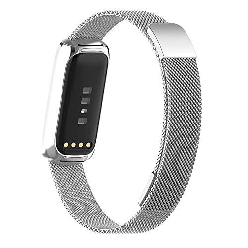 Wongeto Cinturino compatibile con Fitbit Luxe, cinturino magnetico regolabile in acciaio inox, cinturino di ricambio per Fitbit Luxe Fitness e Wellness Tracker per donne e uomini, Argento