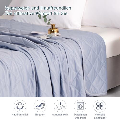 WONGS BEDDING Coperta auto-raffreddante 200 x 220 cm, in microfibra Arc-Chill, coperta estiva con fibre refrigeranti Q-Max, coperta double face, per bambini e adulti, blu