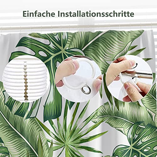 WONGS BEDDING Tenda da doccia 180 x 200 cm, con foglie di banana, antimuffa, impermeabile, per vasca da bagno, con 12 ganci