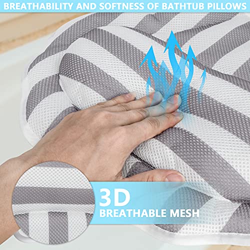 【ANTISCIVOLO E FACILE DA MANEGGIARE】Il cuscino da bagno è stato realizzato con il tessuto innovativo 3D Air Mesh, 6 ventose posizionate strategicamente si adattano perfettamente a ogni comune vasca da bagno con una superficie liscia e garantiscono una presa più salda del cuscino della vasca.