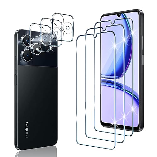 Wonsoso Compatibile con realme C53 Vetro Temperato, 3 Pezzi Durezza 9H Pellicola Protettiva e 3 Pezzi Pellicola Fotocamera, Senza Bolle, Anti Graffio, HD Clear Schermo Pellicola