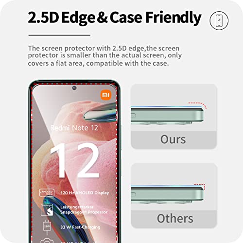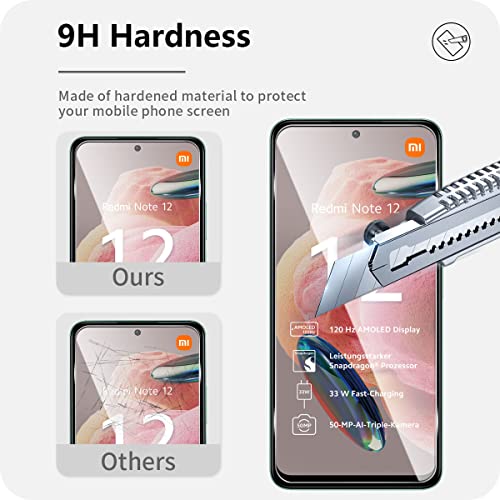 Wonsoso Compatibile con Redmi Note 12 4G Vetro Temperato, 3 Pezzi Durezza 9H Pellicola Protettiva e 3 Pezzi Pellicola Fotocamera, Senza Bolle, Anti Graffio, HD Clear Schermo Pellicola