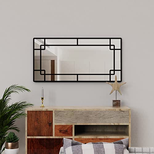 WONSTART Specchi decorativi da parete metallo, Specchio Ingresso da parete specchi rettangolare da parete moderni, Specchio a finestra orizzontale o verticale (nero)