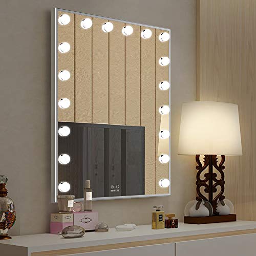 ★ Specchio trucco con luci: con lampadine a LED dimmerabili da 18 pezzi, con natura e illuminazione brillante, luce del giorno bianca regolabile o luce gialla calda.