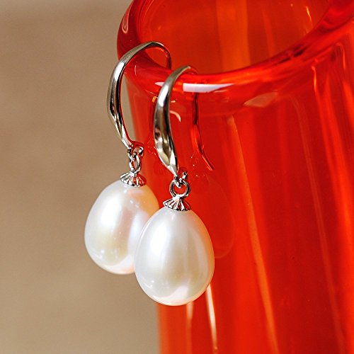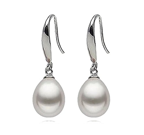 Wonvin 925 Argento sterlina 8-9MM bianco dangler degli orecchini della perla di goccia d'acqua dolce con il sacchetto e la scatola del regalo
