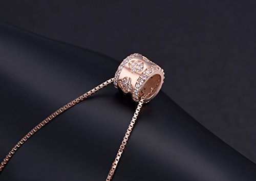 Wonvin, collana in argento Sterling 925 per ragazza, placcata in oro rosa 18K, perline costituite di piccoli zirconi sul ciondolo a trifoglio, catenina di 45,7 cm + 5 cm di estensione