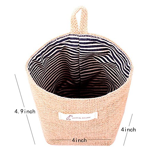 Wonzom Cestino contenitore rotondo in juta e lino, da appendere a parete o nell'anta, motivo: righe blu
