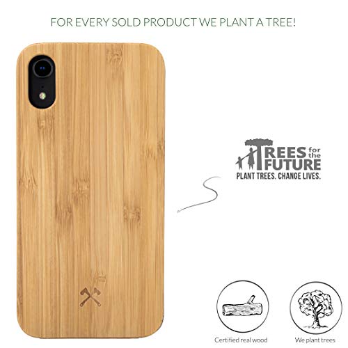 Woodcessories - Cover Compatibile con iPhone XR di Legno Naturale - Custodia EcoCase Classic (Bambú/Nero)