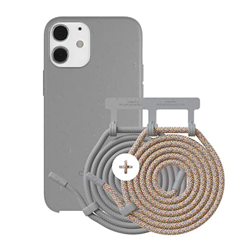 Woodcessories - 2 in 1 Cover organica compatibile con iPhone 12 Mini custodia - Set di 2, Collana Grigio Arancione