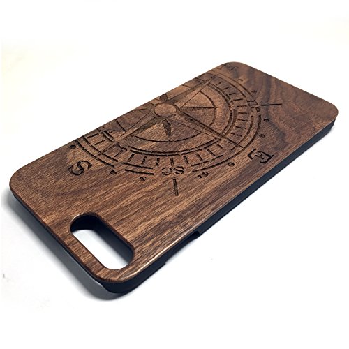 Wooden Case Cover, Unico Reale Handmade Legno [Naturale WoodBack Lavorato Custodia] Per Apple iPhone 7 Plus(5.5 Pollici)(compass)