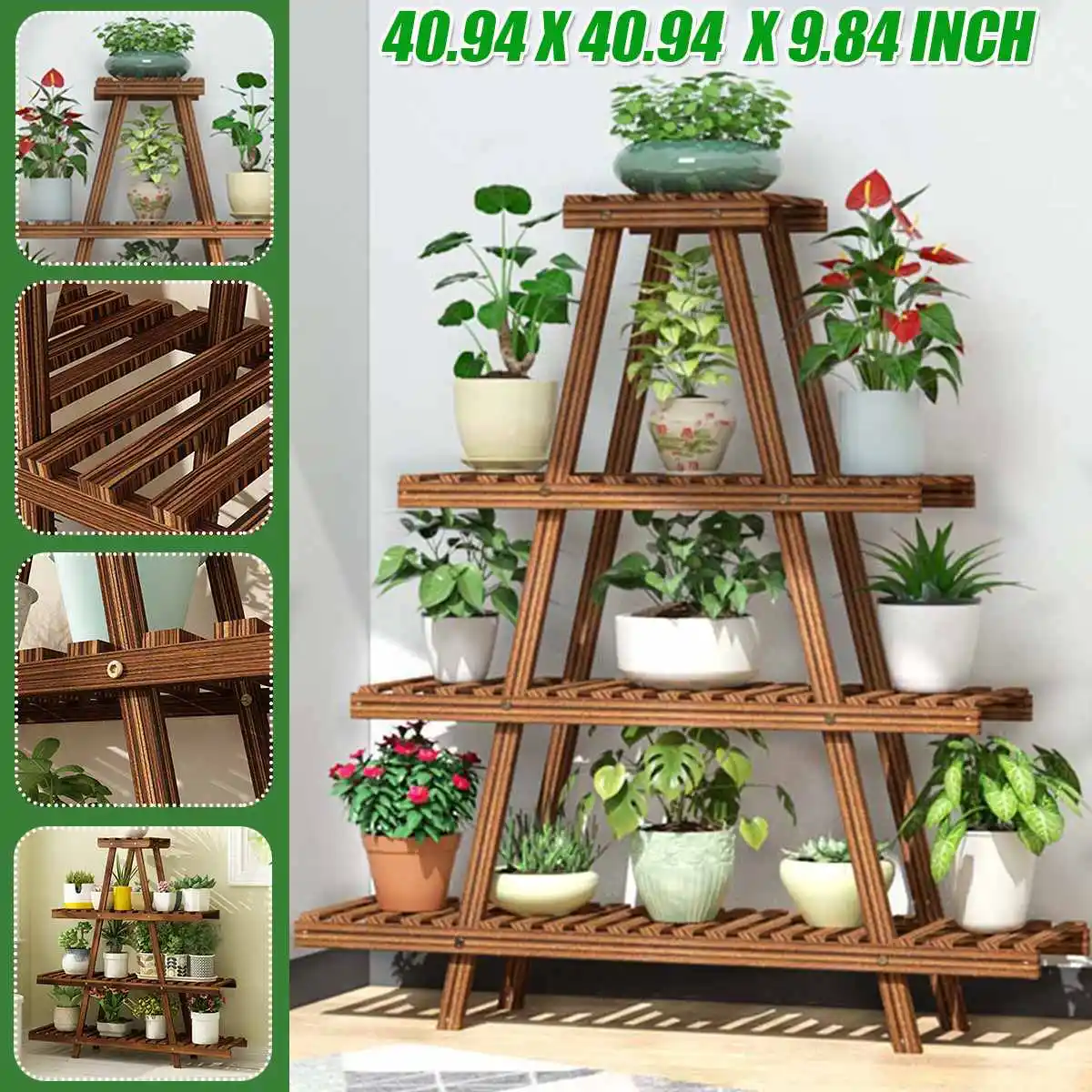 4 Tier Wooden Flower Rack Plant Stand Multi Flower Stand Shelves Bonsai Display Shelf Yard Garden Patio Balcony Flower Stands