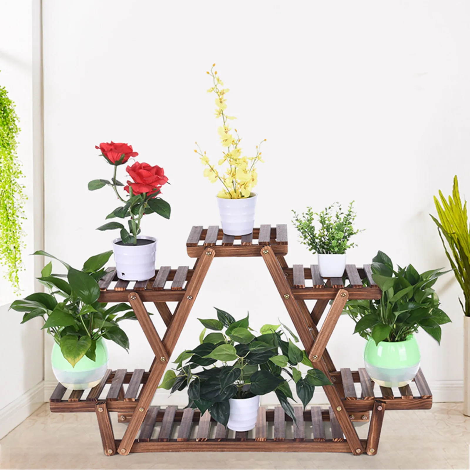 Wooden Plant Stand Triangular Flower Pot Holder Storage Rack Display Shelf 6 Pots Flower Stand Storage Rack Garden Decor