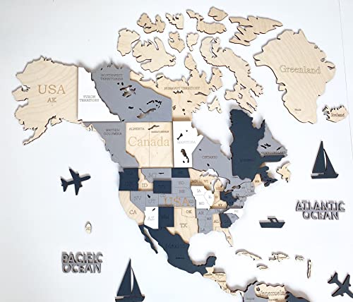 Wooden World Map 3D Art Large Wall Decor - Size (M, L, XL) Any Occasion Gift Idea - Wall Art For Home, Kitchen or Office (SIZE M, ALASKA)