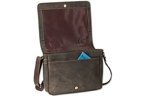 Woodland - Borsa di lusso con scomparto per notebook in pelle di bufalo naturale in marrone scuro/Taupe