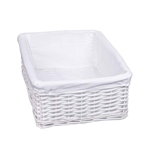 Woodluv - Cestino in Vimini Grande con Rivestimento, Colore: Bianco
