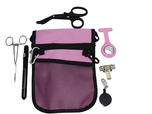 Woodnine - Kit organizer per infermieri con 6 accessori (orologio da infermiere, forbici, portabadge, pinza, portapenne, lampada da esame), rosa