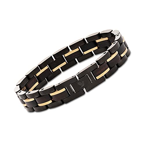 WOODSTAR (BLACK PYTHON) Bracciale da Uomo in Acciaio e Legno, Gioielli Moda Maschile, Braccialetto Regolabile Nero Oro B20-010