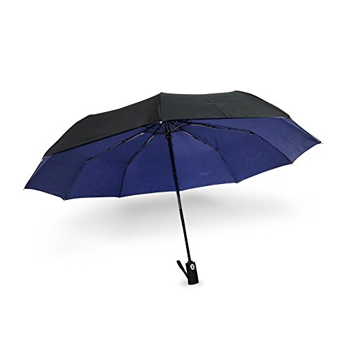 WoodyKnows Double layer Automatico Apertura/Chiusura Ombrello pieghevole 10Stecche Visiera antivento Uomo Donna Bambino Commerciale Parasole ombrellone (Blu)