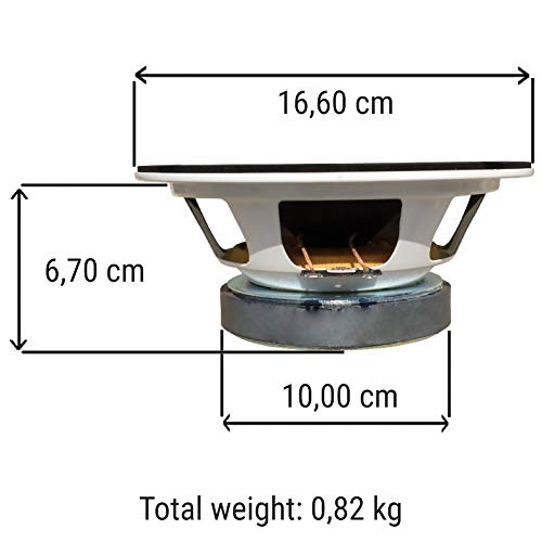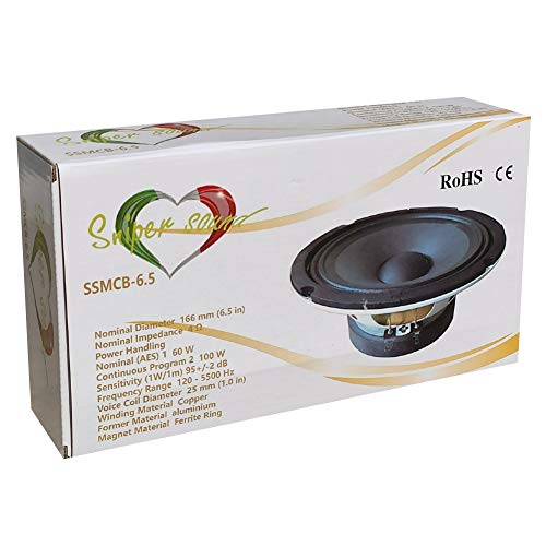 Woofer da 16,50 cm di diametro (6,5") molto potente e molto compatto. L'impedenza è di 4 ohm quindi è adatto per usi in auto per porte e portiere. E' possibile installarli sia singolarmente, sia a coppia o anche più pezzi per portiera. La risposta in frequenza è di 120 - 5500 hz.