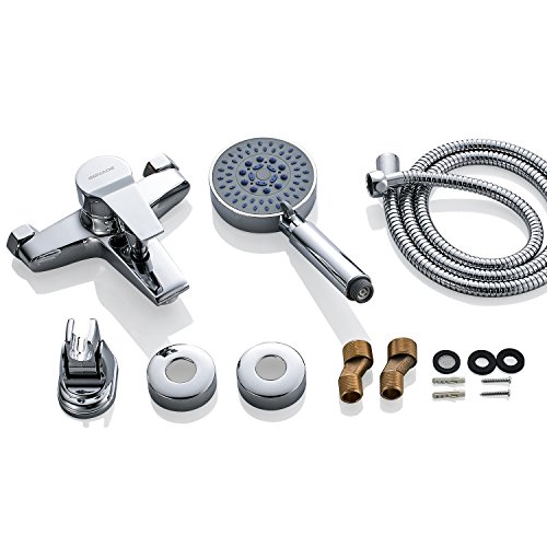 WOOHSE Rubinetto per Vasca da Bagno con Montaggio a Parete e Doccetta per Bagno, Cromato
