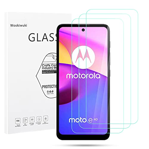 Wookiwuki 3 pezzi di vetro temperato compatibile con Motorola Moto E40, proteggi schermo per smartphone HD, durezza 9H, 0,33mm ultra chiaro, anti-impronta, installazione facile