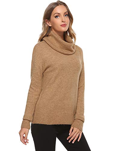 Woolicity Donna Dolcevita Lavorato Maglione Tinta Unita Maglia Manica Lunga Classic Fit vestibilità Slim Casual Maglioni Pullover, Marrone, Large