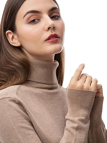 Woolicity Donna Maglia Maniche Lunghe Leggero Maglione Collo Alto Casuale vestibilità Sottile Classica Tinta Unita Maglioni, Marrone, Medium