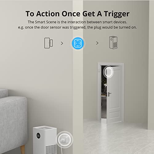【Scena intelligente】 La Smart Plug presa è il supporto da aggiungere all'APP "eWelink" per creare scene intelligenti, ad esempio se si utilizza con il sensore per porte e finestre, è possibile impostare quando il sensore per porte e finestre riceve il segnale, la presa lo farà accendi la luce automaticamente, quindi non è necessario trovare l'interruttore per accendere la luce al buio.