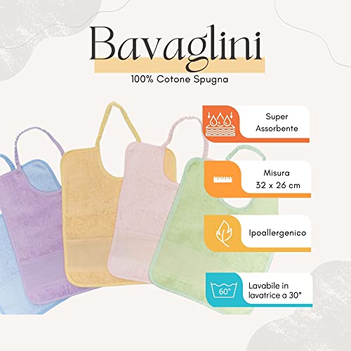 Le nostre bavaglie asilo con elastico e asciugamani asilo sono disponibili in diverse tonalità e colori pastello. L'asciugamano misura 37 X 51 cm ed è dotato di una pratica asola per appenderlo Il bavaglino misura 24 X 33 cm, in taglia unica con elastico.