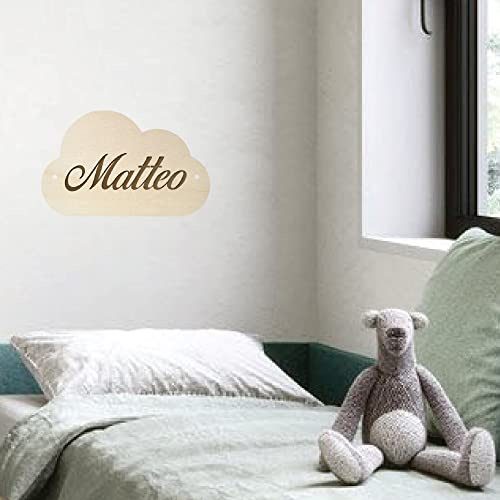 Woolove Targhetta Legno Personalizzabile per Culla, Cameretta, Cuccia Personalizzata in Legno di pioppo da 6mm Forato per Fai da Te