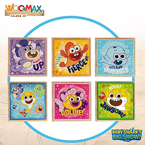 Unisci i cubi per creare divertenti illustrazioni con questo puzzle in legno WOOMAX Baby Shark's Big Show!