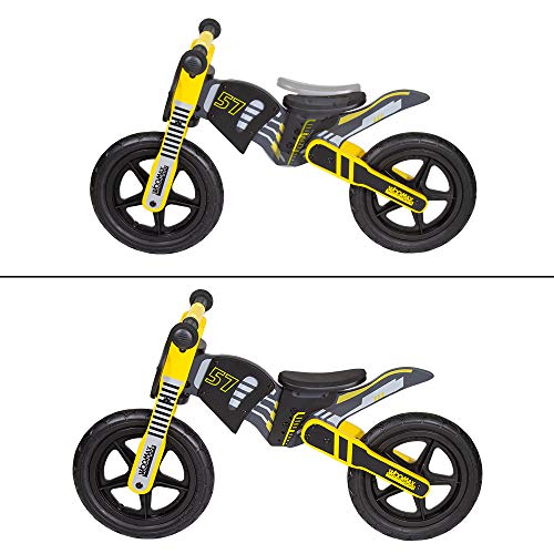La bici Cross 57 WOOMAX ha un originale design di moto tipo cross ottimale per piccoli grandi piloti