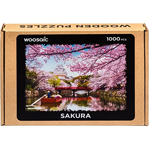 WOOSAIC Puzzle di Legno - Natura Sakura, 1000 pezzi, 23,6"x17,3", Bellissima Confezione Regalo, Forma Unica Miglior Regalo per Adulti e Bambini