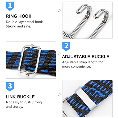【Robusto e Resistente】Il gancio di metallo sul cinghie elastiche non si rompe, si deforma o non arrugginisce e gli articoli in bundle sono più sicuri. La connessione con fibbia è sicura. Il processo di cucitura trasversale può impedire che la corda si rompa alla connessione.