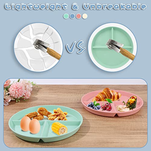 WOOWAIR 4 Pezzi Piatto Piano Colorato in Plastica con 3 Scomparti, 22,5 cm Vassoio per Alimenti Rotondo Riutilizzabili Piatto a Scomparti Piatti per Dieta Divisi Piatti Piani Infrangibili per Adulti