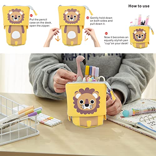WOOXDYUK L'astuccio per matite del Leone con Cerniera, Astuccio e portamatite 2 in 1, Astuccio telescopico per matite, portamatite telescopico, portamatite