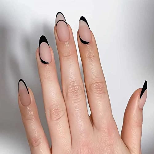 WOOXDYUK 24 pezzi premere su unghie, punte delle unghie, per manicure portatile, linea a goccia d'acqua, per donne e ragazze, fai da te (linee nere)