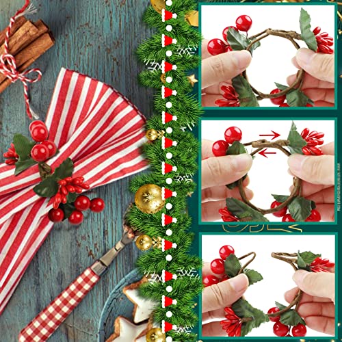Wordmouk Anelli di Porta Tovagliolo di Natale 8 Pcs Bacche Rosse Anelli Portatovaglioli Natale Tovagliolo Anello Portasciugamani Christmas Napkin Rings Holder per Porta Tovaglioli da Tavola Natalizio
