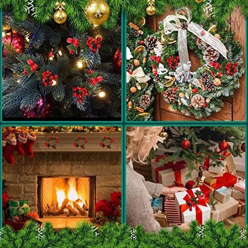 8 Portatovaglioli bacche rosse fatti a mano, composti principalmente da bacche rosse artificiali e foglie verdi. Il design incorpora classici elementi natalizi per aggiungere un'atmosfera natalizia al tuo tavolo da pranzo.
