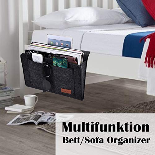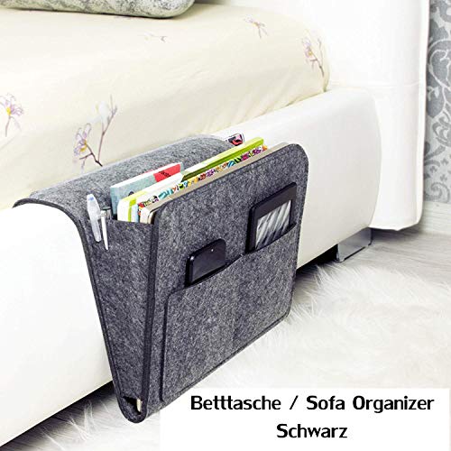 Workbees Borsa da Letto, Organizer per Divano, in Feltro, Antiscivolo, per Libri, riviste, iPad, Cellulare, Telecomando Grau (Nero)