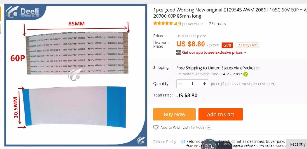 1pcs good Working New original E129545 AWM 20861 AWM 20706 105C 60V 60P = AWM 20706 60P 85mm long