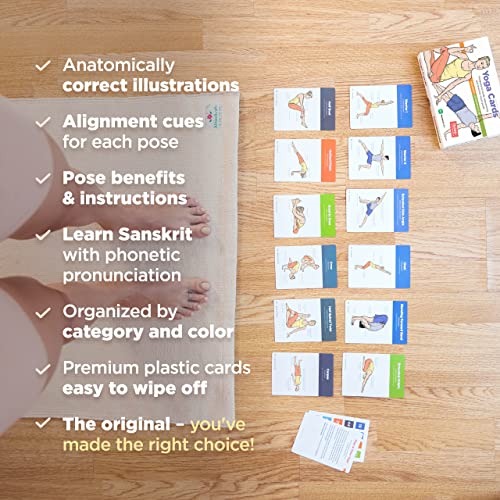 WorkoutLabs Carte di Yoga in plastica con linguaggio sanscrito per Lo Studio visivo, Il sequenziamento delle Classi, la Pratica con Posture, Esercizi di respirazione e Meditazione (Gioco Completo)
