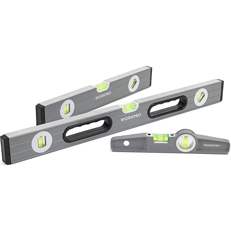 Incluso: livella siluro Pro-cast da 9 pollici, livella a spirale a fascio di scatola da 16 pollici, livella a spirale a fascio da 24 pollici. Avete sempre le mani libere quando allineate i pali metallici.