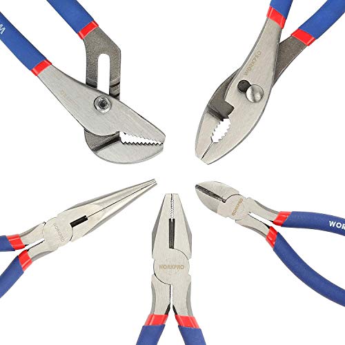 WORKPRO, Set di 5 Pinze per Uso Quotidiano Include Pinza a Becco Lungo, Pinza Universale, Pinza Diagonale, Pinza a Pappagallo e Pinza Regolabile