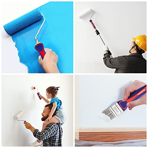 WORKPRO Set di Rullo Pittura 10 Pezzi, Rulli per Pittura per Imbiancare Pareti e Soffitti, con Pennelli Pittura, Vassoio, Rulli 100mm e 230mm, Manici, Nastro Adesivo e Panno Protettivo in Plastica