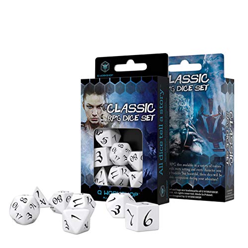 Q WORKSHOP Classic White & Black Rpg Ornamented Dice Set 7 polyhedral Pieces